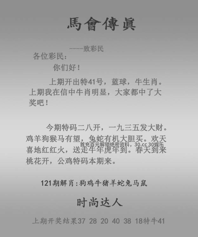 | 120期:男女②肖【女肖+龙猴】开:牛41 |